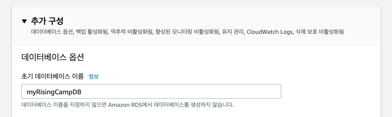 ์ถ๊ฐ ๊ตฌ์ฑ์ ๋๋ฅธ ๋ค ์ด๊ธฐ ๋ฐ์ดํฐ๋ฒ ์ด์ค ์ด๋ฆ๋ง ์ค์ ํด ์ฃผ๊ณ ๋๋จธ์ง๋ default๋ก ๋๊ณ ํ๋จ์ ์๋ ๋ฐ์ดํฐ๋ฒ ์ด์ค ์์ฑ ๋ฒํผ์ ํด๋ฆญํ์ฌ DB๋ฅผ ์์ฑํด ์ค๋ค.