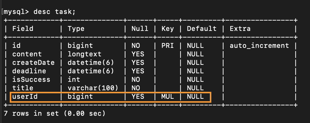 ์ด๋ธ์ FK๋ฅผ Task ๊ฐ์ฒด์ ์ ์ฅํด ์ฃผ์๋ค.